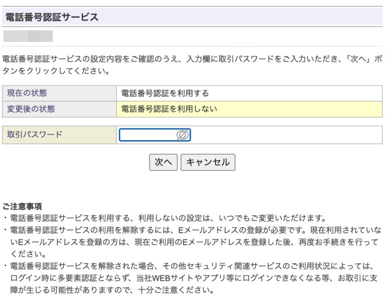 SBI証券、電話番号認証サービスを「利用しない」に設定変更して解除できた記録